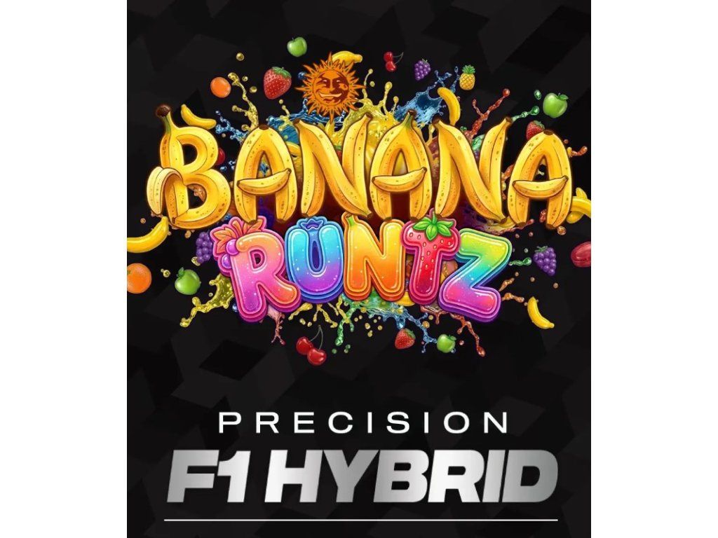 Banana Runtz od Barney’s Farm jsou feminizovaná semena s genetikou Runtz x Banana OG. Tato odrůda patří do řady Precision F1 Hybrid, má 30 % THC a vyvážený poměr 50 % sativa / 50 % indica. Chuť je sweet, candy a tropical. Aroma je banana, ripe a fruity. V indooru dorůstá přibližně 100–120 cm, kvete 60–65 dní a výnos může dosahovat až 550 g/m².