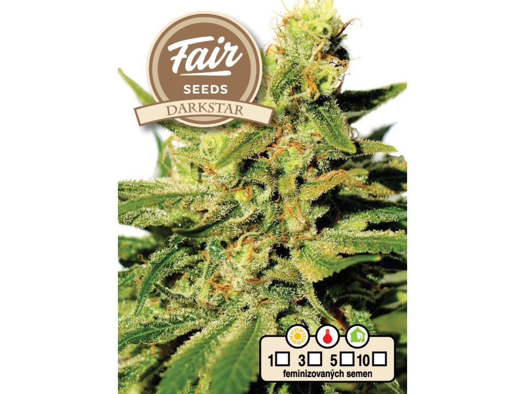 Fair Seeds Darkstar je feminizovaná odrůda s převahou indiky, známá svým výrazným sedativním účinkem a zemitým aroma. Balení je k dispozici po 1, 3, 5 a 10 kusech. Další informace o genetice, výšce, době kvetení, obsahu THC, výnosech nebo specifických doporučeních pro pěstování nejsou v dostupných zdrojích uvedeny.
